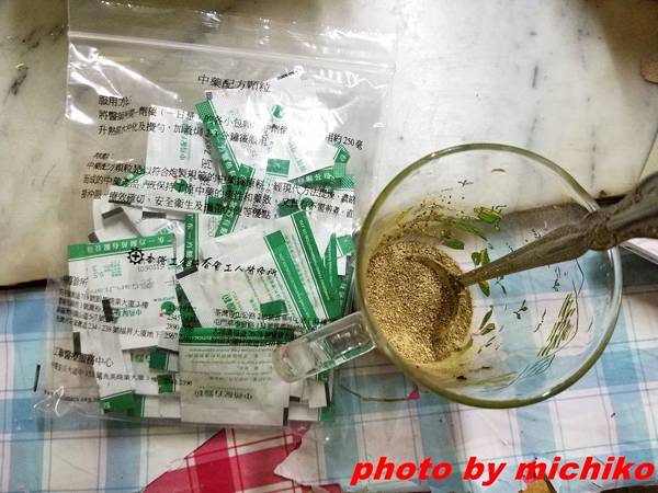 現在的沖劑也很方便,藥粉加到杯裡,再加熱水拌勻就成了。