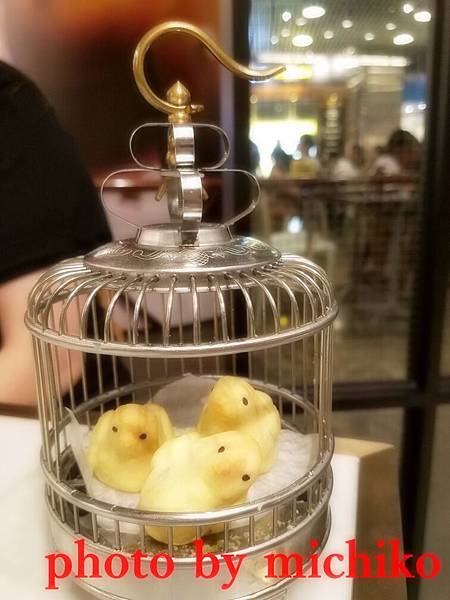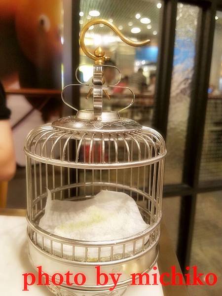 上桌時附鳥籠,內有3隻小鳥很可愛。